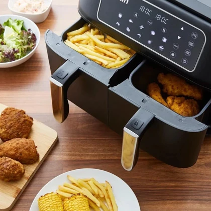 CRISP FRYING WITH AIR, NOT OIL-Why compromise on crunch when you can enjoy your favourite fried foods without excess fats or greasy residue? The air fryer’s secret is to rapidly circulate high temperature, so food is quickly sealed, keeping the outside crispy and the inside tender and juicyEASY COOK..